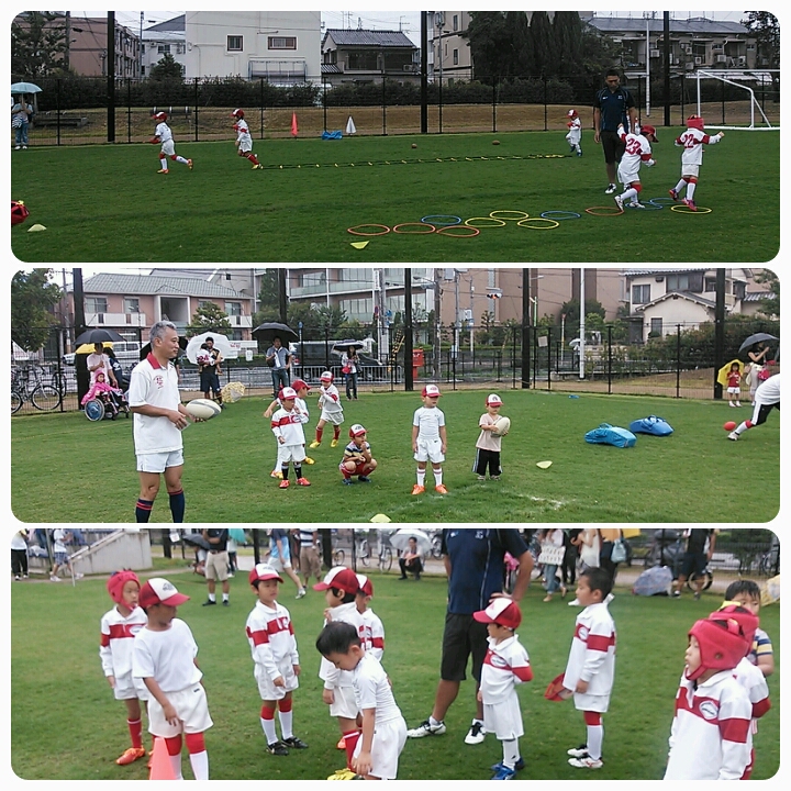 初回の負けに奮起したのか?前半から、キャプテンy9がディフェンスで大活躍をみせるとどっからでも取れる理想的な展開、つなぐラグビーもみられてグー 試合中に成長した感じ。遂に、年長ゲームで、年中k14がトライをゲット。