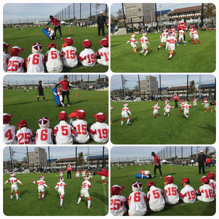 試合早々t19が相手ボールをうばうビックプレー、t11は何度もタックルで貢献。オフェンスに注目がいっていたt11がディフェンス出来るようになったのも、嬉しい限りです。キャプテンr18はビックゲインも途中退場、しかし気持ちで試合に戻る、r16は年少ながら前後半ピッチにたち続けました、a26も前を向いてプレーできましたね。