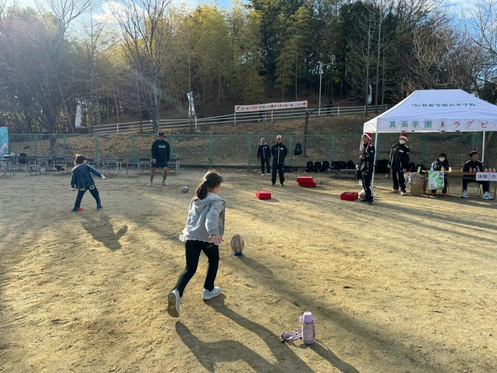 豊中ラグビーユニオンは、12月17日、今冬一番の冷え込みと思われる寒さの中、スクールの練習を終えたあと、千里北町公園で開催されている地域おこしイベントの「新千里野球祭り」に参加してきました。