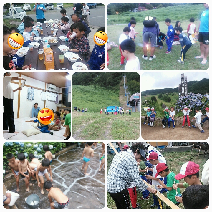 やってきましたハチ高原。今年もここで合宿です。初日の集合は、朝7時半。ここで、お父さん、お母さんと離れて、幼年さんの冒険が始まります。